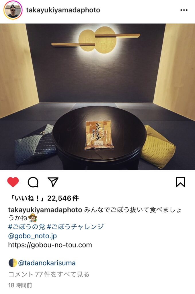 そんな山田孝之は選挙前に、インスタグラムで「ごぼう天」の写真をあげ、「みんなでごぼう抜いて食べましょうかね」というコメントと共に、「#ごぼうの党」「#ごぼうチャレンジ」というハッシュタグも付け投稿している。