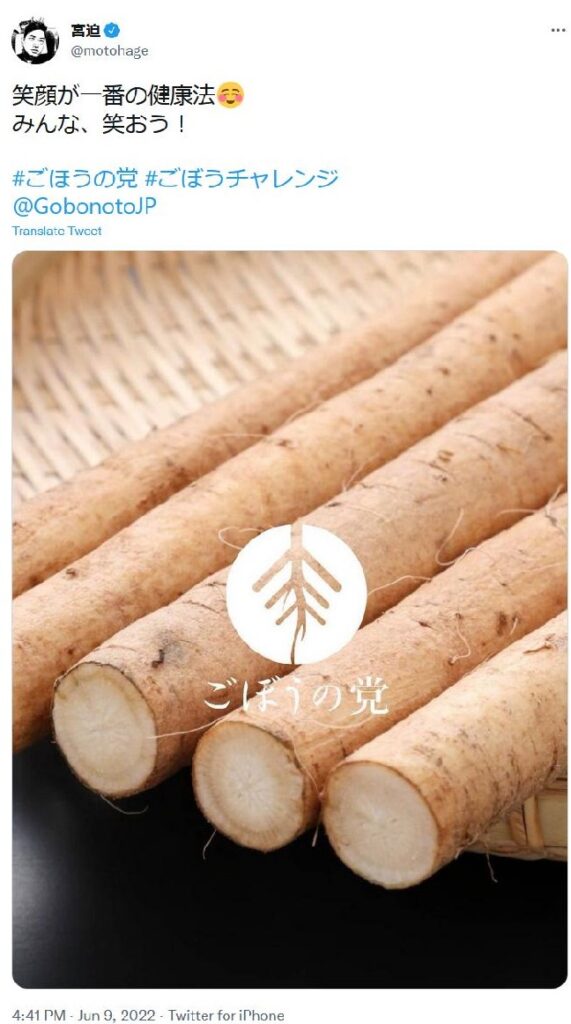 2022年6月16日には「打ち合わせ中に出てきたワード、ごぼうの党。ごぼうの党ってなに?」